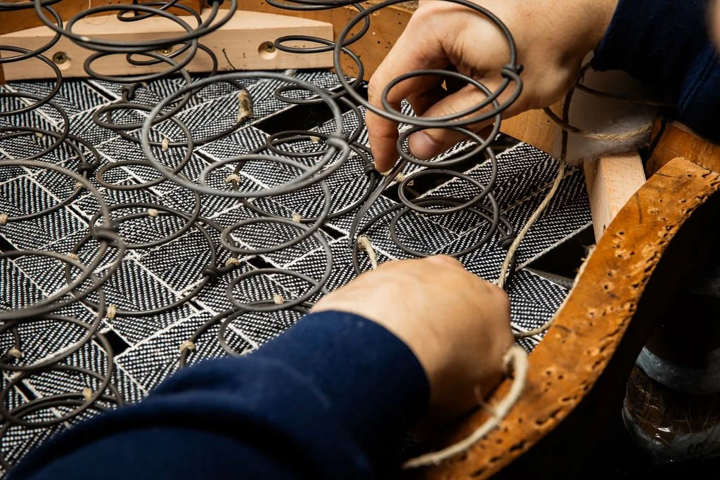 From individual hand-tied springs to coir, hessians, the softest lambswool, and loose curled hair, we select materials that not only provide a firm and supportive base but also enhance the longevity of your furniture.