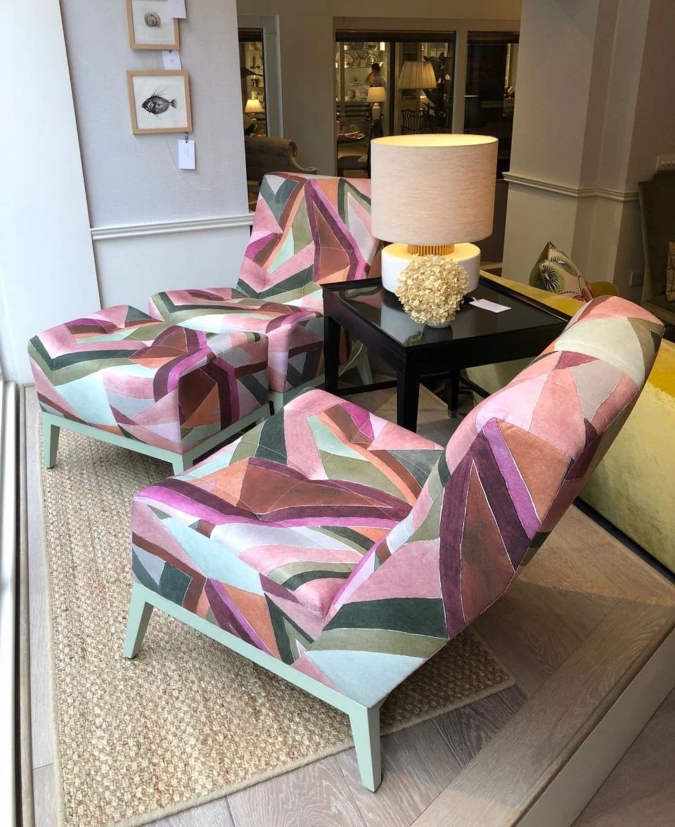 You can find this particular chair as a pair complete with a matching run-up footstool on display in our London showroom now - come in and take a seat, we look forward to welcoming you!