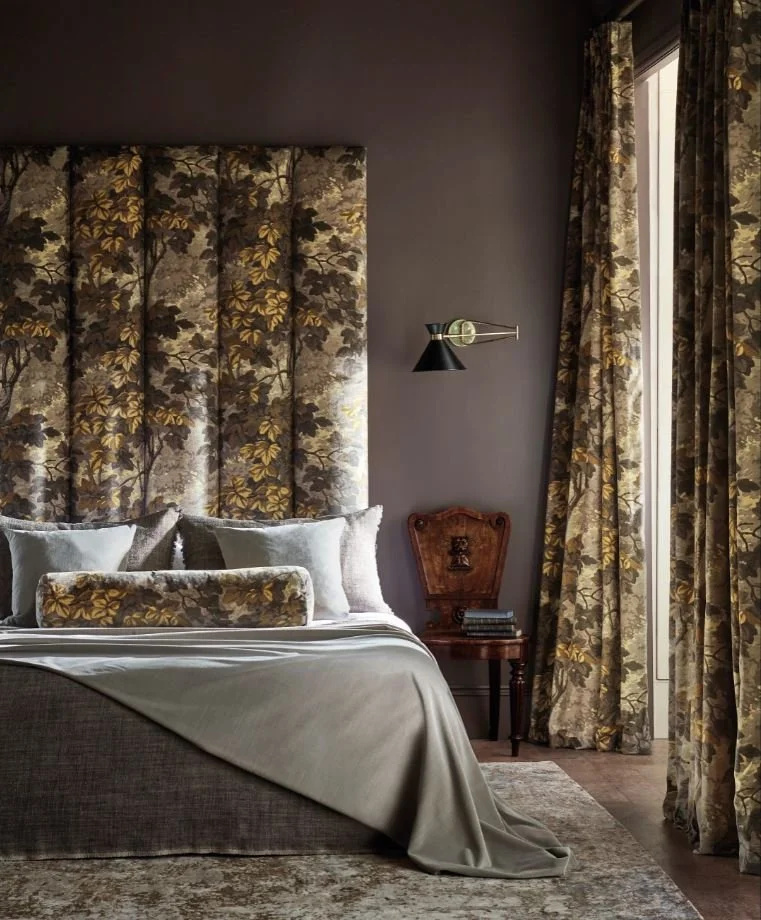 One of our most popular designs and the most simple to create, our Aldford headboard is very comfortable with soft fillings and exquisite finishing. Ideal for a variety of bedroom interiors with the choice of being wall mounted or attached to a divan base. Shown on the right is one of our recent Aldford Headboards we had made for Rapture & Wright fabrics, covered in their new ‘Moorish Maze’ fabric.